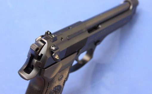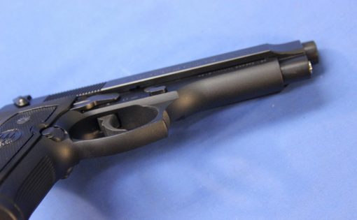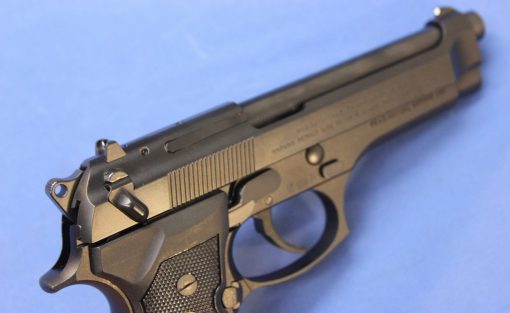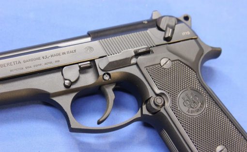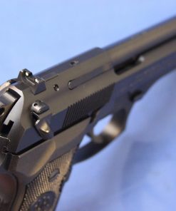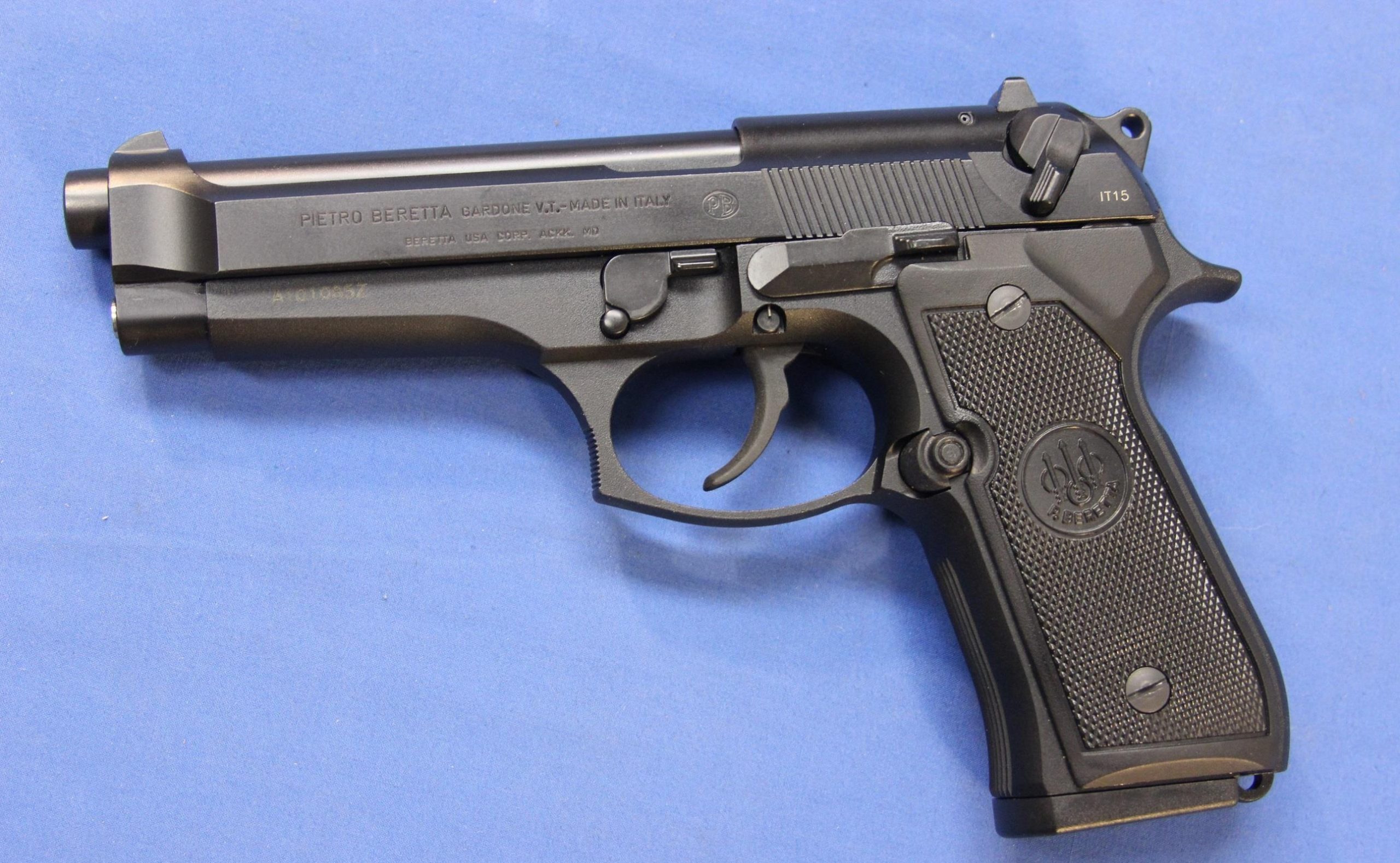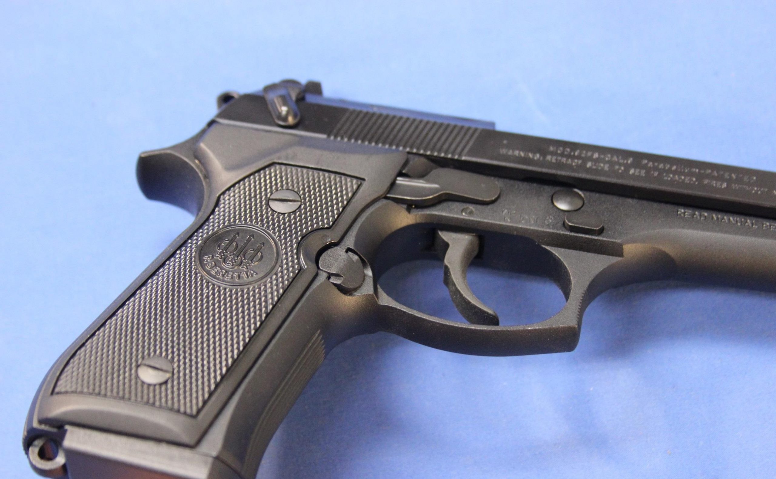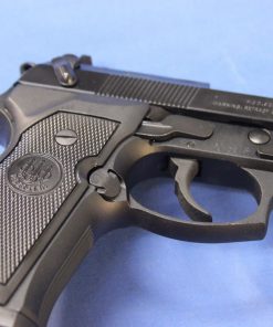 For sale we have a Beretta model 92FS pistol in 9mm. This gun features an alloy frame with matte black finish and black synthetic grips, a blued slide with ambidextrous decocker/safety, DA/SA action, 5″ barrel with 3-dot combat sights, and 15-round magazine. Gun is in excellent condition, and comes in factory box with two magazines.