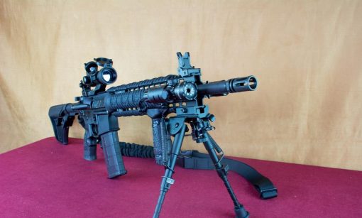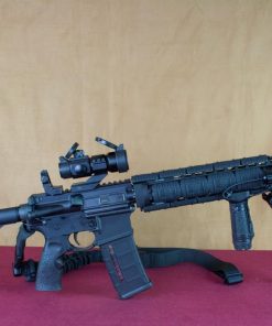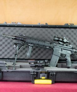 Everything you see: Rifle Rifle Length 13″ Free Float Quadrail UTG Rail Covers Daniel Defense Furniture Kit (Black) Green Laser with Foregrip-mounted Pressure Switch 150-Lumen Flashlight Flip-up Sights Nylong Single-Point Sling 4x Magpul Gen 2 30-rnd Magazines 4×30 Tactical Rifle Scope (red/green/blue illuminated reticle) Plano 42″ Gun-Guard All-Weather Locking Gun Case