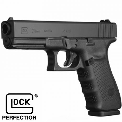 Glock 21 Gen4 .45 – Remarkable for its accuracy and light recoil, the GLOCK 21 Gen4 delivers the power of the 45 Auto round with high magazine capacity. The Modular Back Strap system makes it possible to instantly customize its grip to accommodate any hand size. The reversible magazine catch makes it ideal for left and right-handed shooters The Gen4 system is the perfect complement to the 45 Auto caliber cartridge.