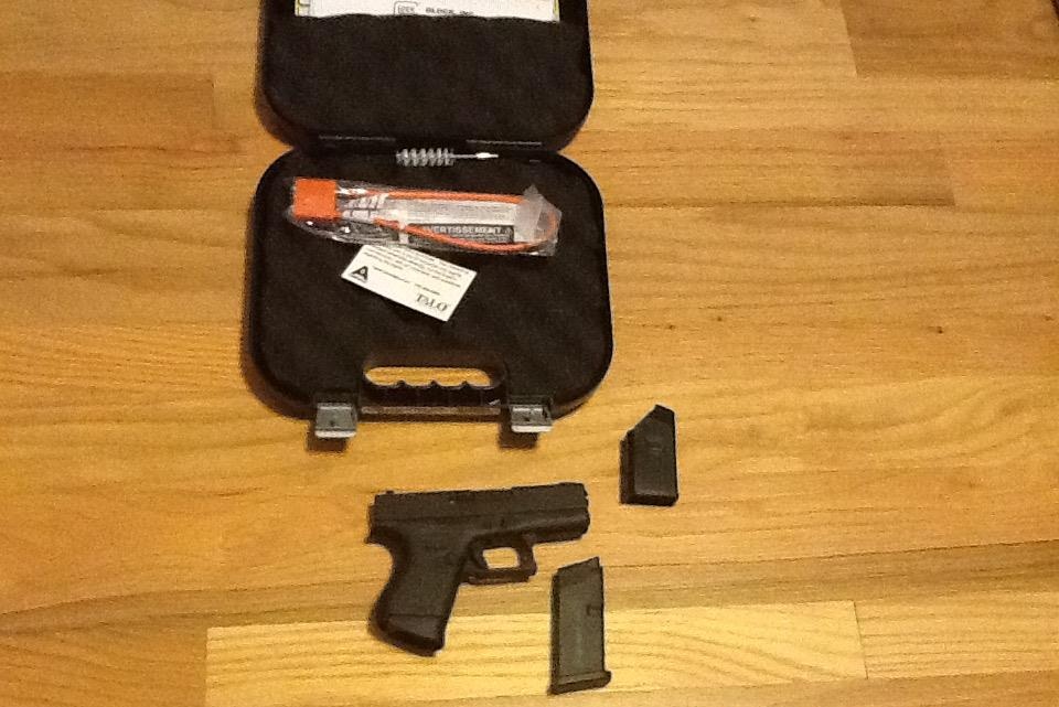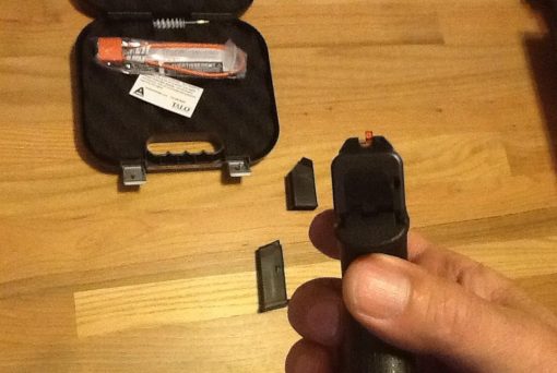 This new Glock 43 (TALO Edition) in 9mm comes with two 6+1 round magazines (one with factory grip extension), cleaning tools,mag loader, Ameriglo front post night sight , and hard case. The G43 is the smallest 9mm single stack Glock made.
