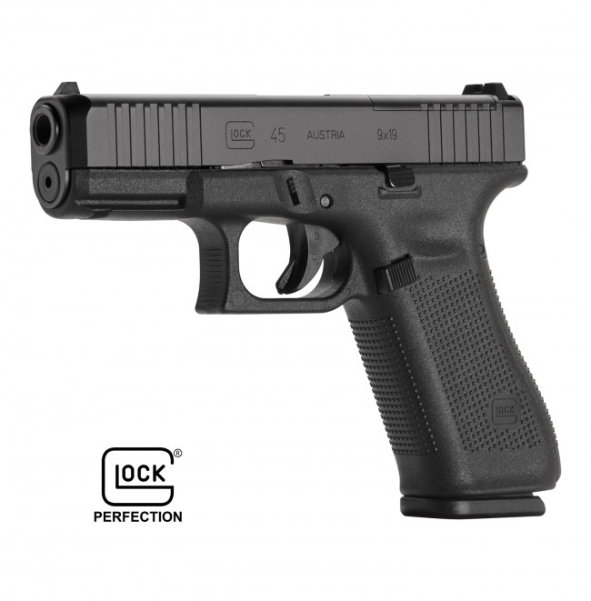 GLOCK 45MOS – Compact Crossover in black The compact crossover pistol G45 in 9x19mm combines a compact slide with a full size frame and has all the benefits of a Gen5 model. Utilizing the design and engineering GLOCK developed for its military pistol (G19X), combined with Operator and worldwide Law Enforcement specifications.