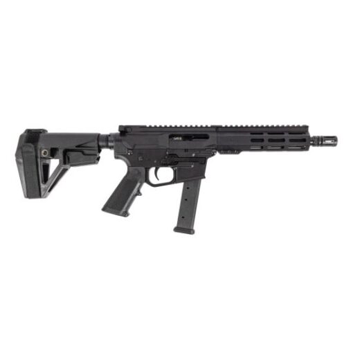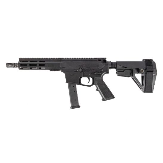 Lower: Forged 7075 T6 aluminum and then hard coat anodized, these lowers are purpose-built to accept 9mm Glock®-style magazines. The lower is assembled with a Palmetto State Armory Classic A2 Grip, PSA Milspec Trigger, Mil-Spec Buffer Tube, and SB Tactical SBA5 Pistol Brace. Does not include last round bolt hold open feature.