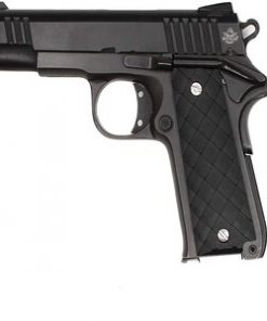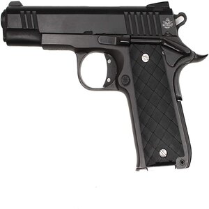 Rock Island Armory Baby Rock GI Standard CS | 380 ACP has a 3.75″ barrel and weighs in at 1.62lbs loaded. Includes stable low profile angled sights designed for consistent accuracy and reliability. Front and rear CNC angle grooves are cut for cyclability in times of need. Add comfortable dovetail grip safety and polymer checkered grips and you have a lifelong compact 1911 at a great price.