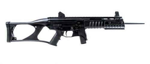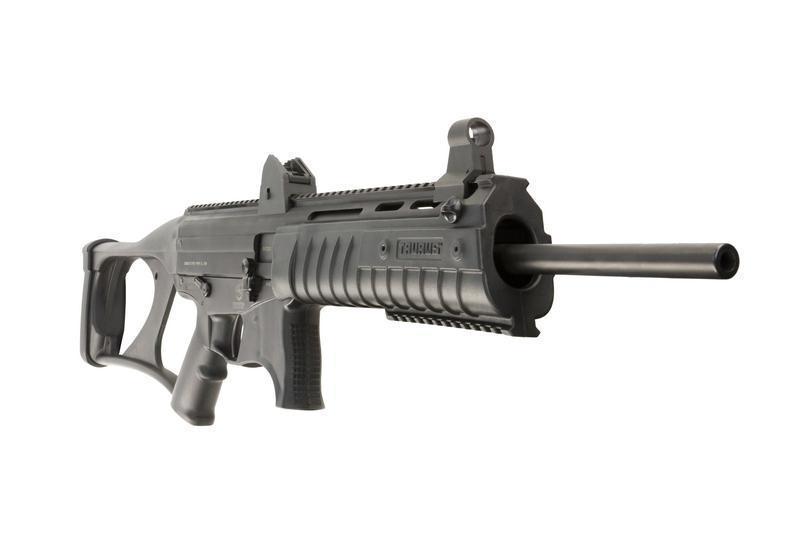 Features a hybrid aluminum/polymer with a reinforced steel frame with a black anodized finish. Flat top, aluminum upper receiver with a built-in Picatinny rail. High-strength polymer lower receiver reinforced with steel. Sixteen-inch barrel with adjustable rear sights and fixed front sights. Ambidextrous slide catch. Two-position safety/fire selector. Taurus Security System. A fixed thumbhole stock. Cleaning kit included.