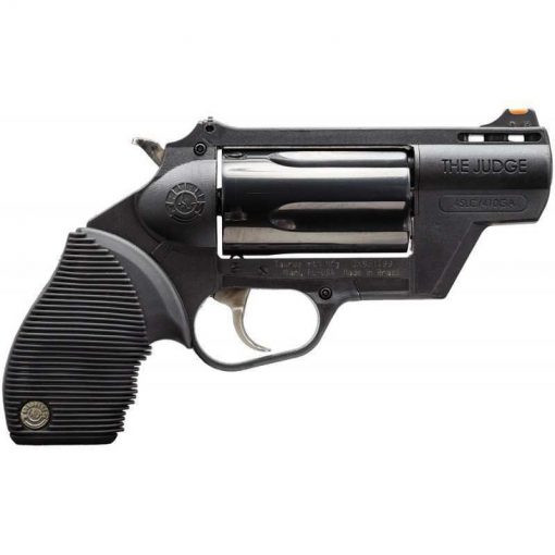 The Taurus® Judge Public Defender™ Double/Single Action Revolver features a steel skeleton inside its polymer exterior frame. The Public Defender is lightweight and quick to get on target. The steel cylinder is chambered for 2-1/2″ .410 shotgun shells, or .45 Colt, and the barrel is rifled. An extended ejector rod kicks out fired cases with ease. Ribbed rubber grips absorb recoil and enhance user control. Comes with an adjustable rear sight and a high-visibility front sight. The Judge Public Defender can be used as both a double and a single action revolver. An exposed hammer allows you to cock and fire the revolver in single-action mode; and a transfer bar safety mechanism prevents the hammer from striking the firing pin unless the trigger is pulled fully to the rear. The Judge Public Defender Double/Single Action Revolver utilizes the Taurus Security System (TSS), enabling you to disable the weapon completely with the turn of a key.