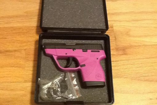 This like new Taurus TCP PT738 in .380acp has the raspberry frame and blued slide . It comes in the original box with one 6+1 round magazine . There has been less than a box of shells put through it without any issues, and it is 100% like new.